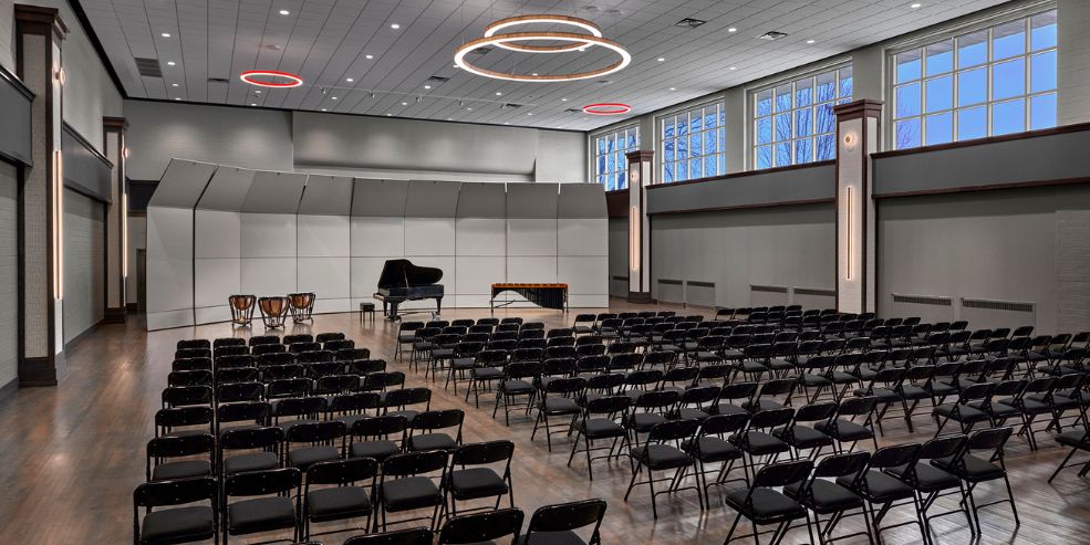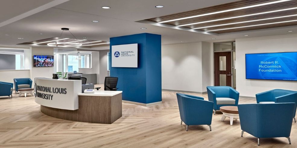The transformation of the National Louis University Student Center illustrates this clearly. Once a closed, inward-facing space, it was reimagined as an open and welcoming hub for campus life. The space now takes full advantage of natural light that floods in from views over Millennium Park in downtown Chicago. A new coffee shop and a mix of social and study spaces support both focused work and spontaneous interaction, reinforcing the idea that learning extends beyond the classroom.